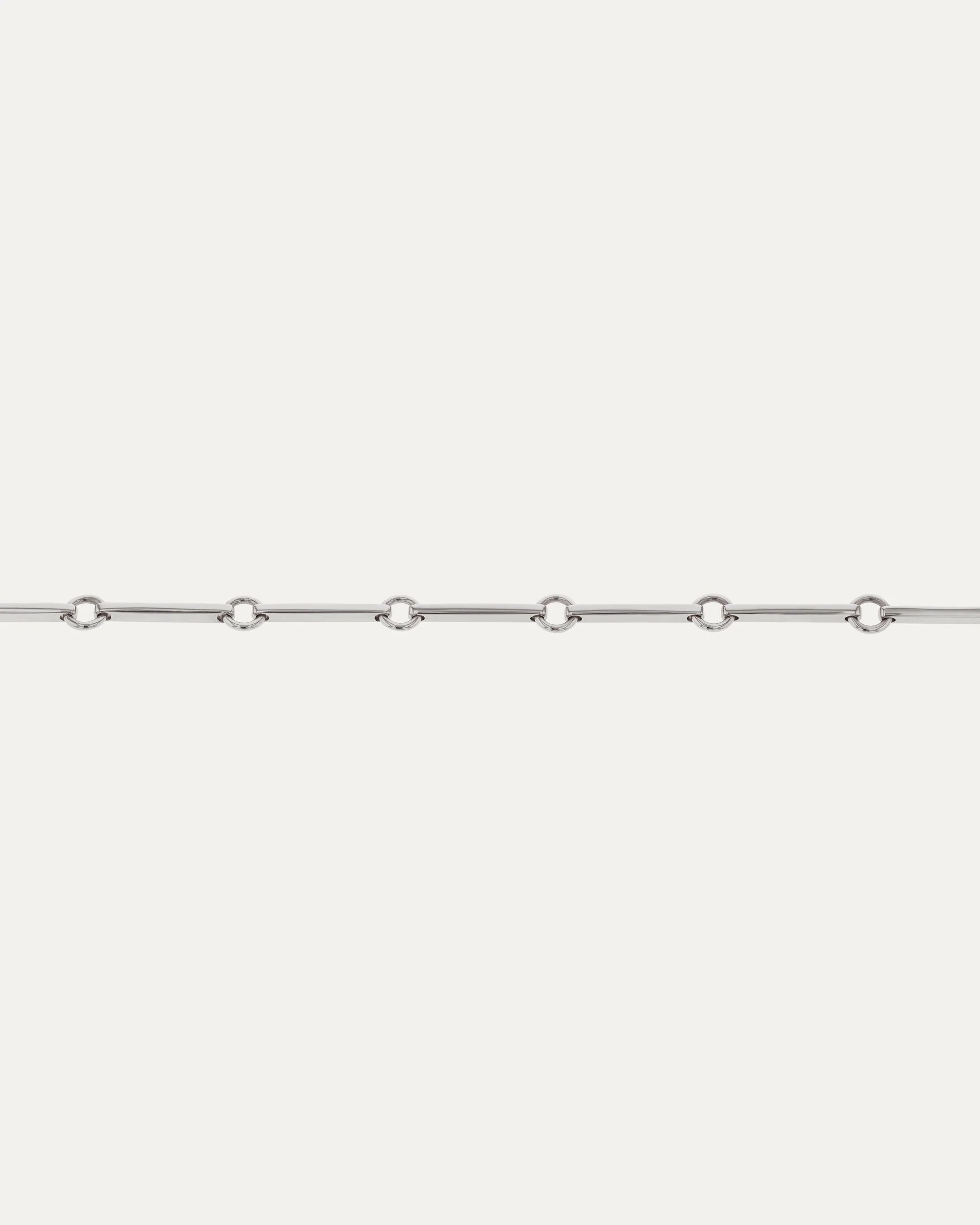 Handcrafted in sterling silver, the Bar Chain Bracelet features sleek, linear links that sit effortlessly against the skin. Perfect for everyday wear, it can be layered for a considered stack or worn alone as a subtle statement.