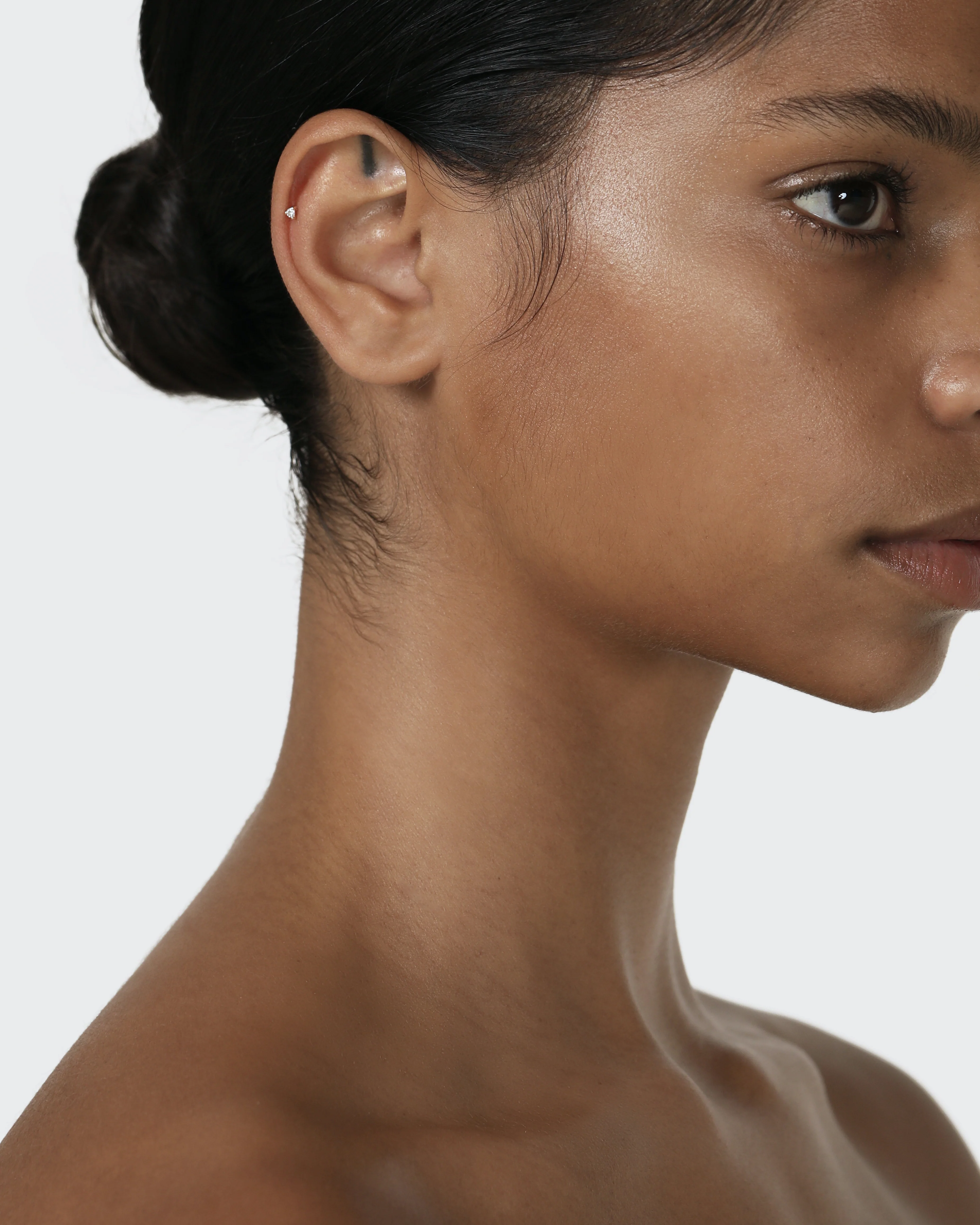 The Element Cartilage Earring is fine and delicate, featuring a white diamond claw set on 18-karat gold. This stud is specifically designed for cartilage piercings but works in other parts of the ear including the lob and daith. It will sing when stacked along the ear with other earrings from the Sarah & Sebastian collection. This piece is sold as a single.