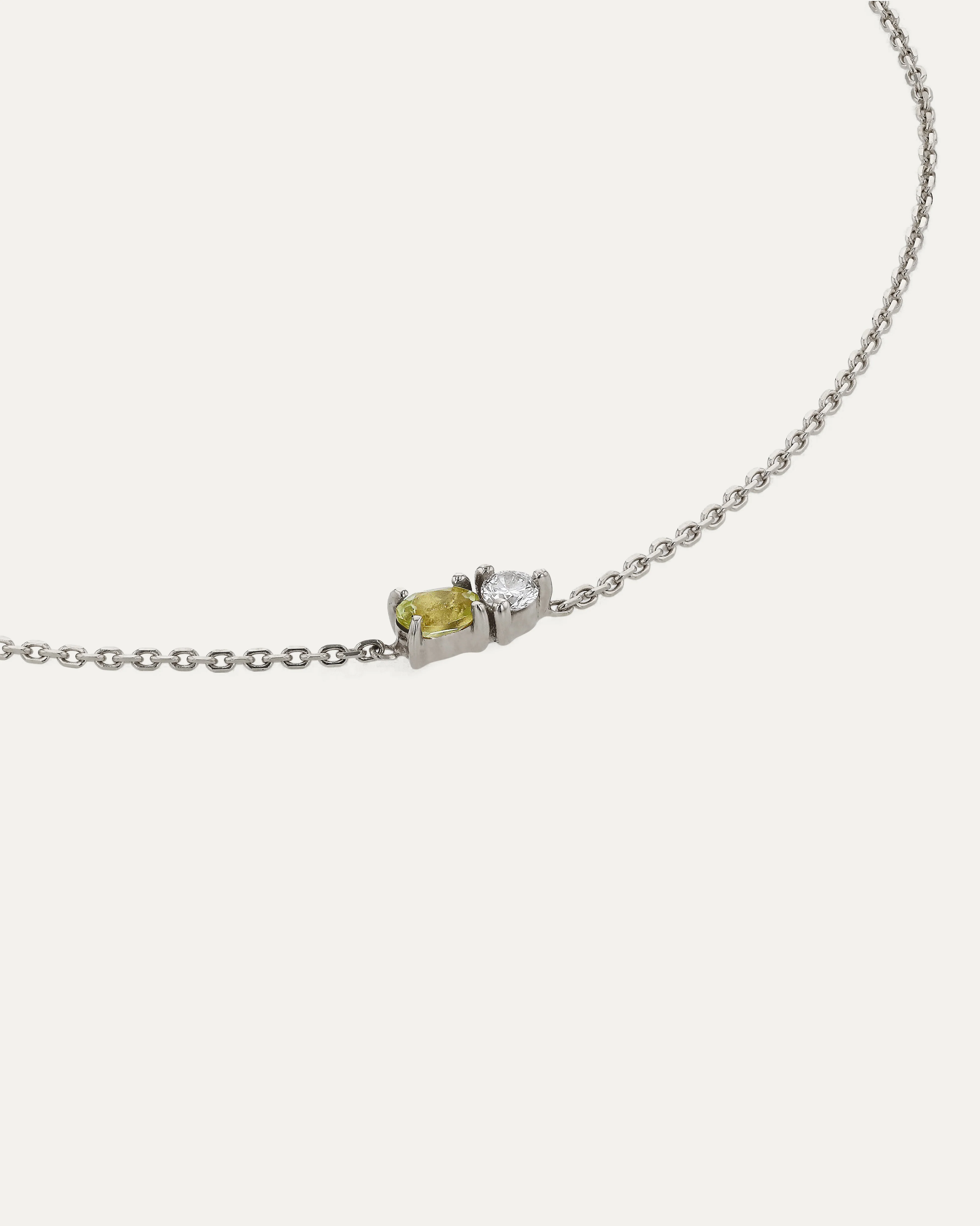 Handcrafted in 18-karat gold, the Micro Sand Diamond Bracelet was inspired by the unique beauty of sand at a microscopic scale. Featuring a dewy peridot cabochon and diamond cluster set on our signature fine chain.