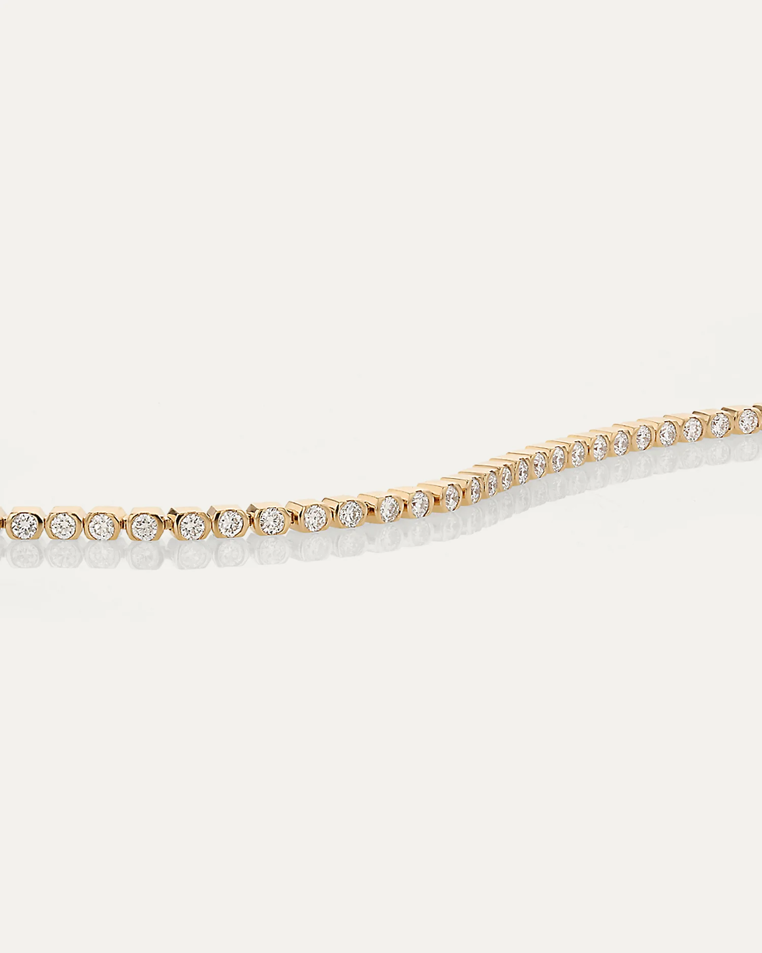 A timeless classic, the Petite Tennis Bracelet is a diamond-centric must-have, brought to the now with our sleek suspense setting. Championing brilliant round-cut diamonds with a total carat weight of 1.68, it features a secure concealed clasp designed in-house to seamlessly integrate as a link.