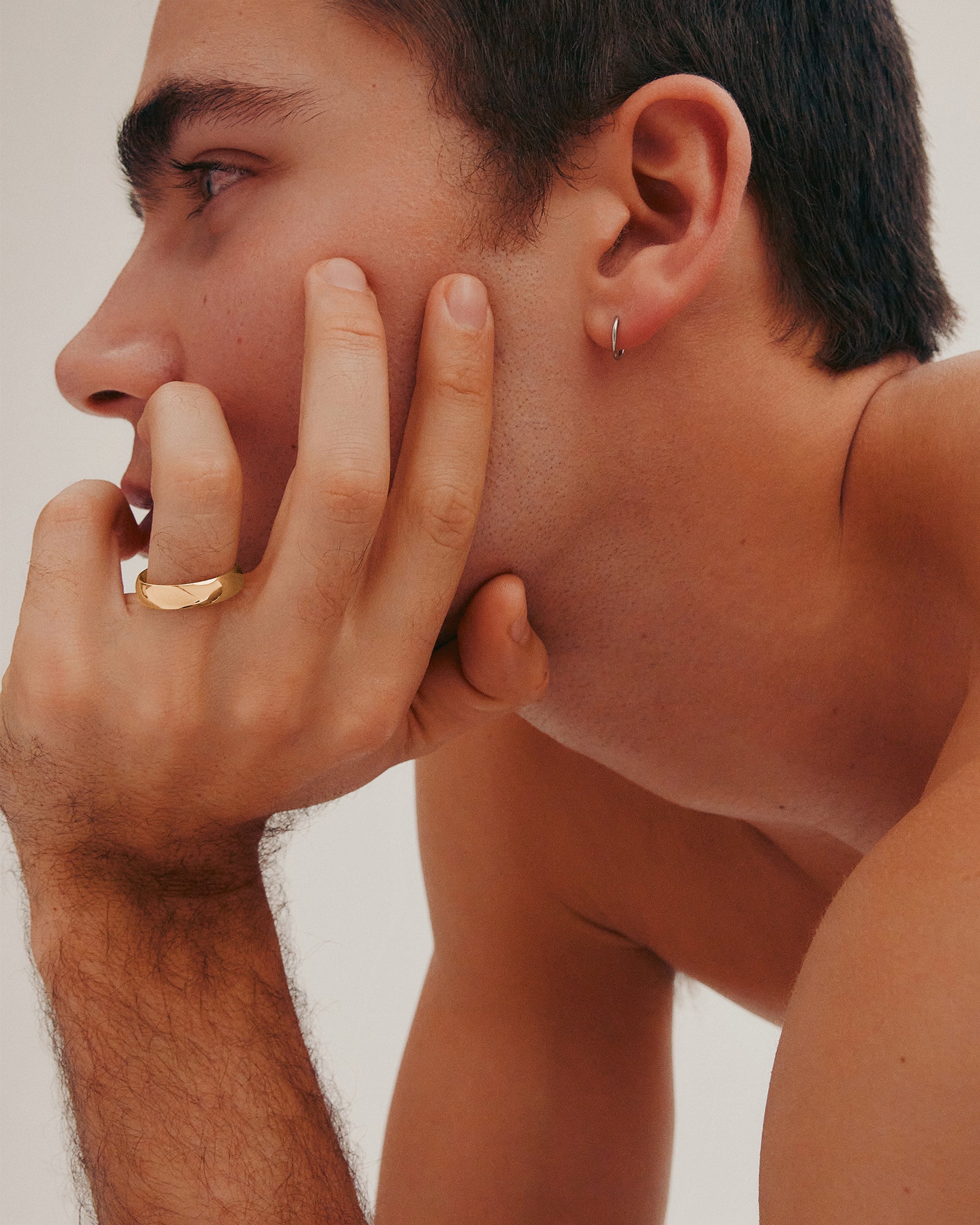 Celebrate your love story with a Sarah & Sebastian wedding band. Our signature ‘Dome II Men’s Wedding Band’ is minimal, classic, and design-oriented, available in solid 10-karat or 18-karat yellow or white gold. With a wider, 5.3mm band and high polish finish, this ring is timeless, just like your union.