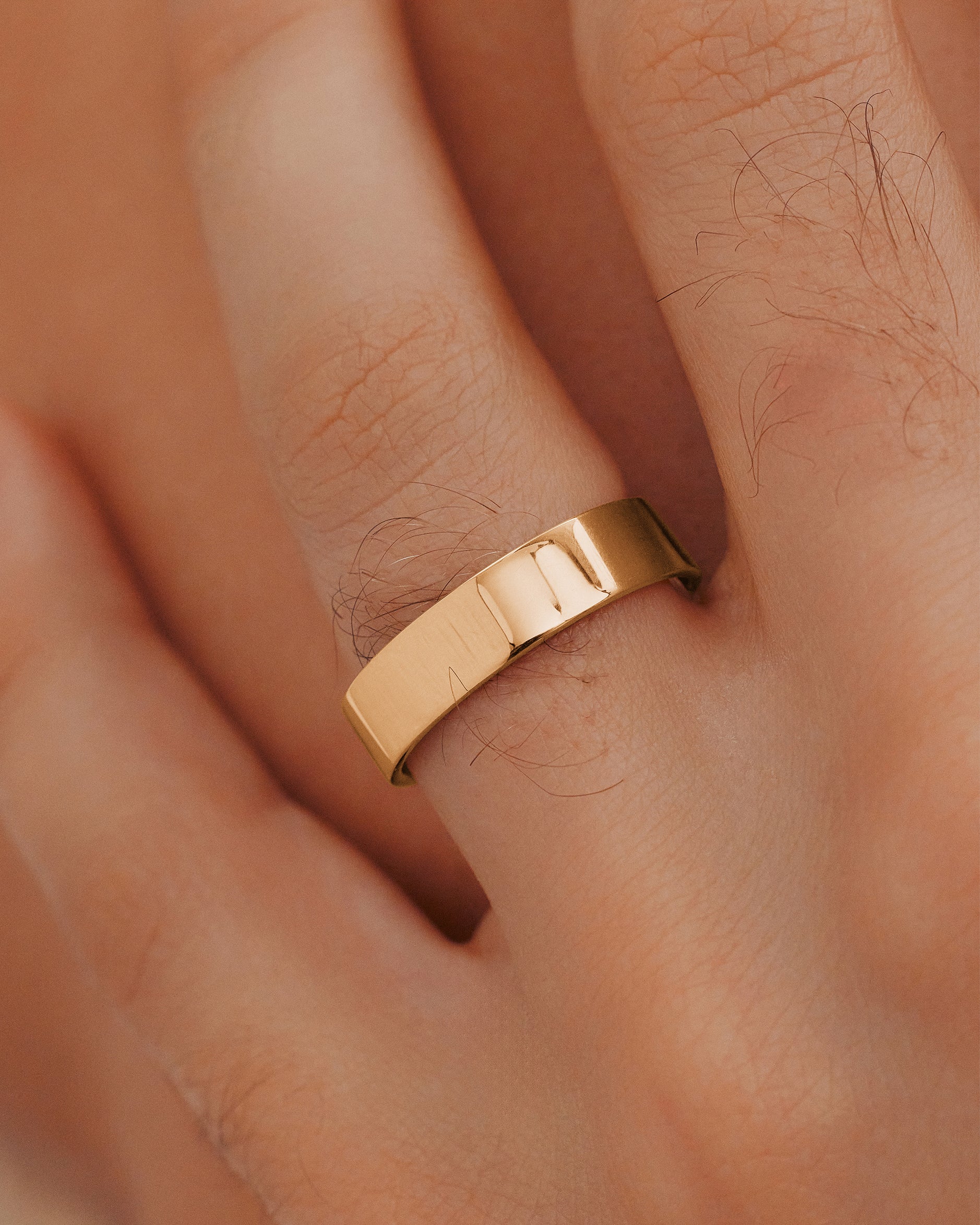 Celebrate your love story with a Sarah & Sebastian wedding band. Our ‘Polished Level II Men’s Wedding Band is minimal, classic, and design-oriented, available in solid 10-karat or 18-karat yellow or white gold. With a slightly wider 2mm band and high polish finish, this ring is timeless, just like your union.